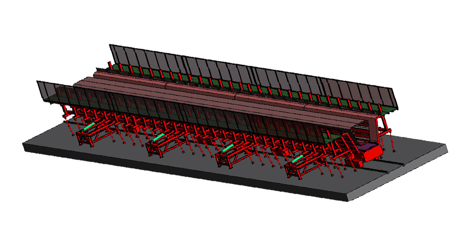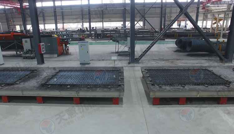 PC環(huán)形疊合板生產(chǎn)線采用高精度、高結構強度的成型模具,經(jīng)自動布料機把混凝土澆筑其中、振動臺振搗后并不立即脫模