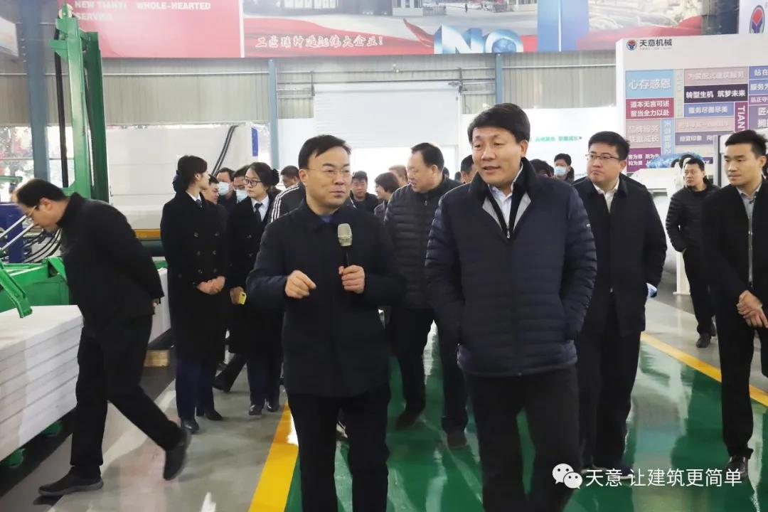 12月18日上午,鄒城市委常委、副市長欒濤一行蒞臨天意考察全市新舊動能轉換現(xiàn)場觀摩項目——裝配式建筑自動化PC生產(chǎn)線項目。兗州區(qū)委常委、區(qū)政府副區(qū)長、黨組副書記屈耀武,天意機械董事長劉洪彬陪同考察。