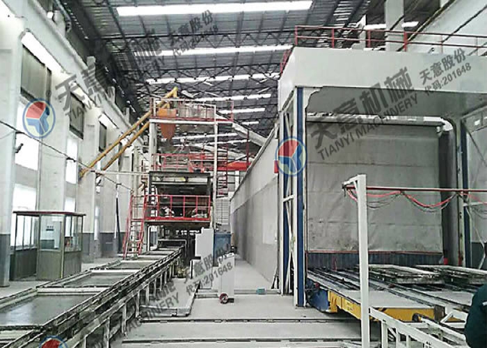 多功能墻板生產(chǎn)線,可生產(chǎn)“三明治”夾芯板,鋼邊框屋面板、樓面板,不帶面板復(fù)合板。生產(chǎn)線主要分為自動配料系統(tǒng)、攪拌系統(tǒng)、發(fā)泡系統(tǒng)、中央控制配電系統(tǒng)、輕質(zhì)混凝土布料系統(tǒng)、磨光系統(tǒng)、模具循環(huán)系統(tǒng)、養(yǎng)護系統(tǒng)、碼垛系統(tǒng)等部分組成。