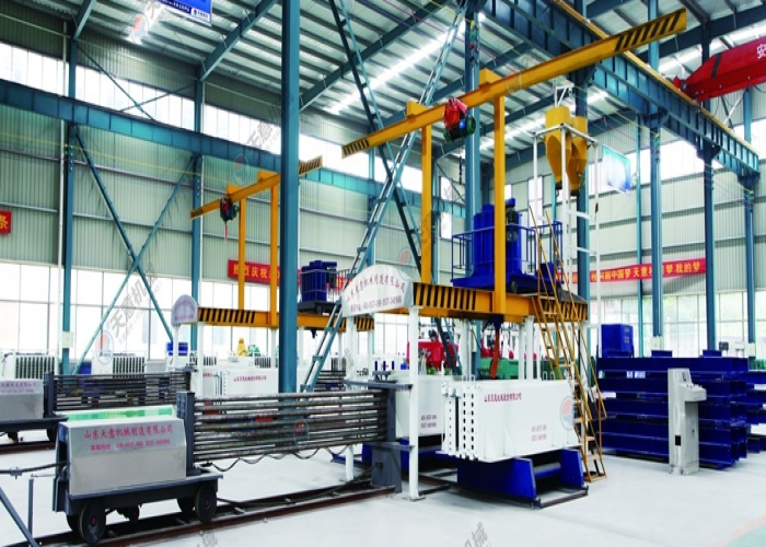 利用天然石膏、脫硫石膏或磷石膏,生產出耐水高強石膏空心墻板、石膏砌塊制作生產技術配方,解決了石膏制品強度低、耐水性能差的技術難題。TYS-08石膏墻板成型機(每次同時可生產四塊厚度可調墻板)。