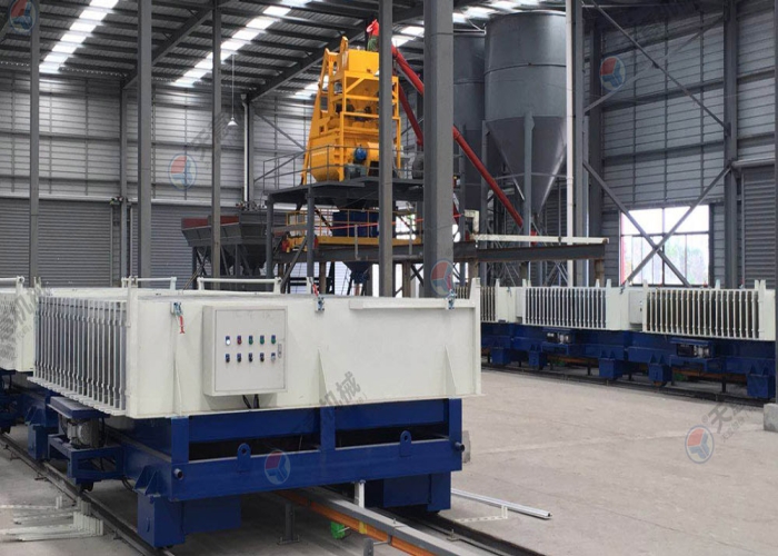 TY20型輕質(zhì)墻板生產(chǎn)線包括:墻板成型機(jī)、整體穿抽管系統(tǒng)、發(fā)泡系統(tǒng)、水箱、電子計(jì)量儲料倉、螺旋上料輸送機(jī)、儲料罐、螺旋輸送機(jī)、EPS熟化料倉、硫化干燥床、EPS預(yù)發(fā)機(jī)、數(shù)控配電室、發(fā)泡攪拌機(jī)、整體出板系統(tǒng)、叉車、成品堆放區(qū)、擺渡車。